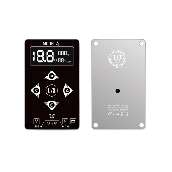 The AVA Model 4 Tattoo Power Supply comes with a full range of specifications including touch screen operation and adjustable voltage outputs. Suitable for any job, this power supply comes housed in a one pieced carved CNC aluminium body.